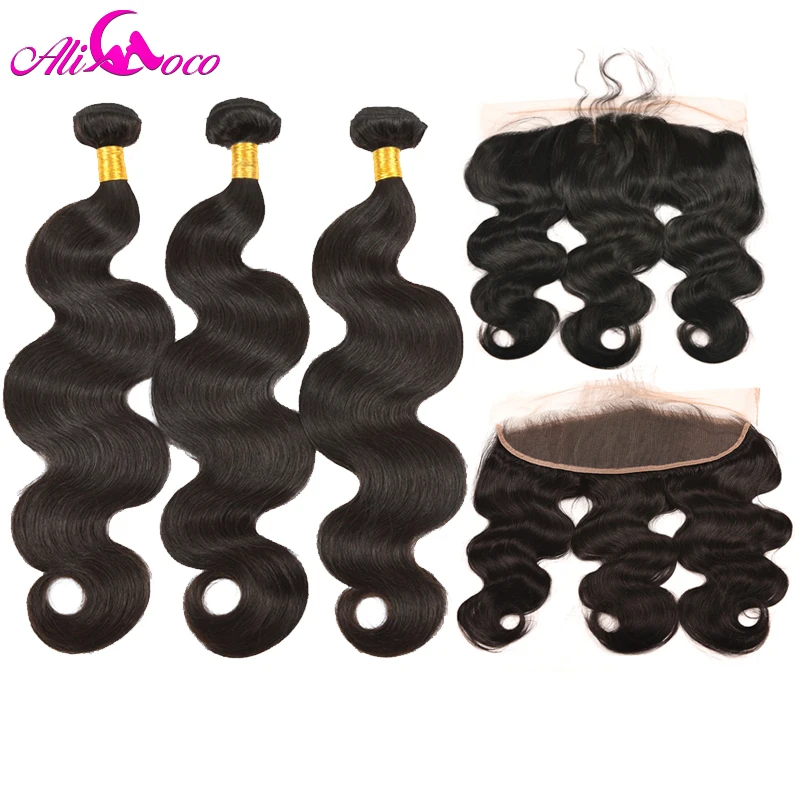 Check Price Ali Coco Brazilian Body Wave With Frontal 13*4 100% Human Hair Free Shipping Buy 3 Bundles New